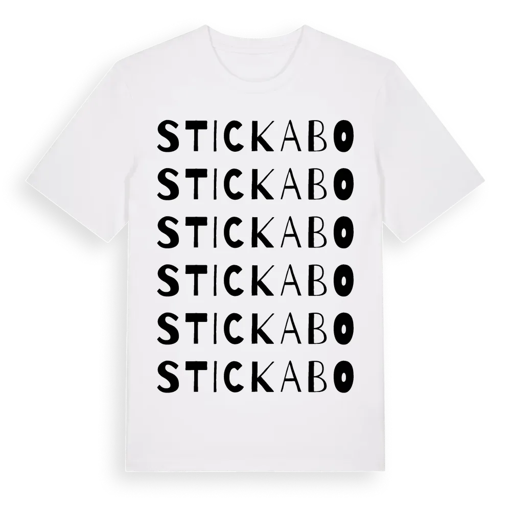 En ordlek byggd på Stickabos namn. Subtilt och klurig – ett motiv som bara de som verkligen känner platsen fullt ut förstår. Premium bomull, unisex – från Stickabo i Jönköpings län.