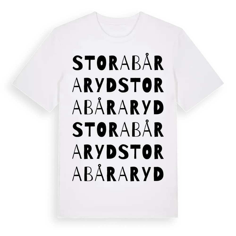 Stora Båraryd ordlek t-shirt är inspirerad av byn Stora Båraryd i Jönköpings län, Sverige. Tröjan är designad för dig som har en speciell koppling till platsen – oavsett om du bor här, har rötterna här eller bara älskar Stora Båraryd.