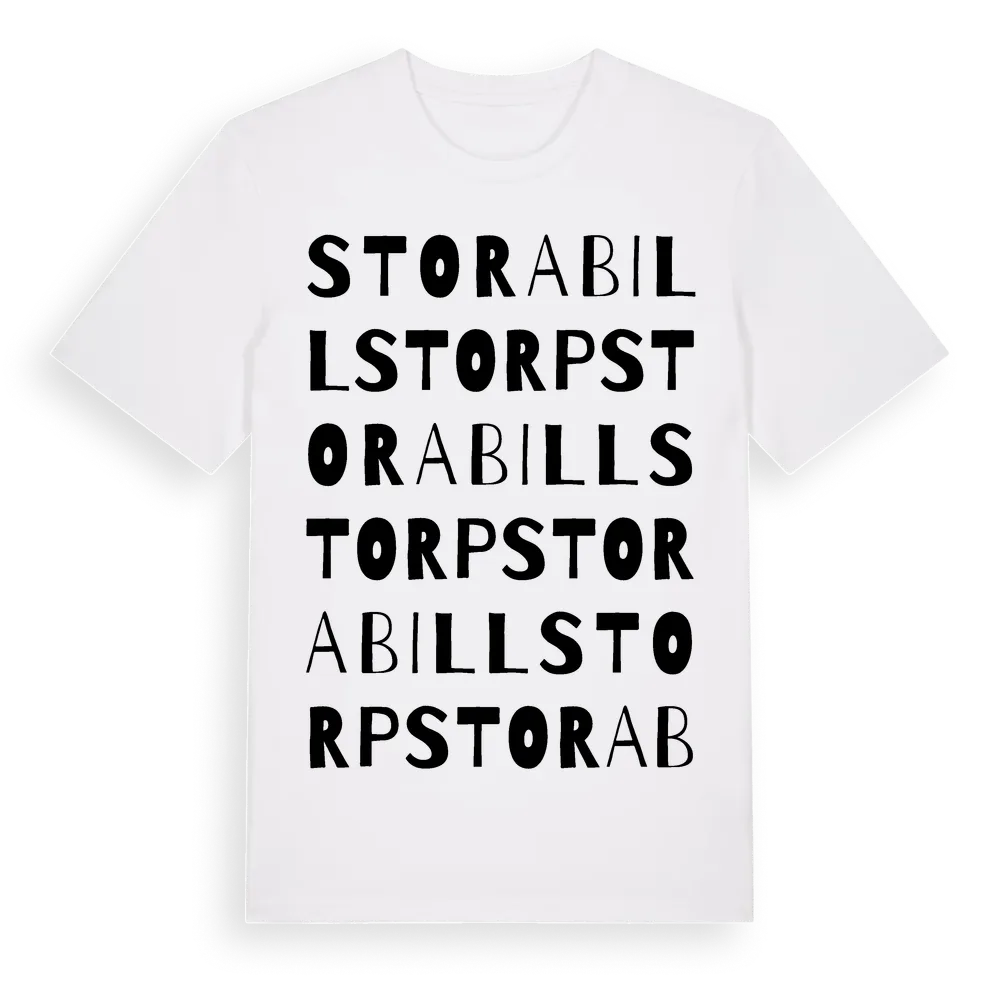 Stora Billstorp ordlek t-shirt är inspirerad av Stora Billstorp i Jönköpings län, Sverige. Tröjan är designad för dig som har en speciell koppling till platsen – oavsett om du bor här, har rötterna här eller bara älskar Stora Billstorp.