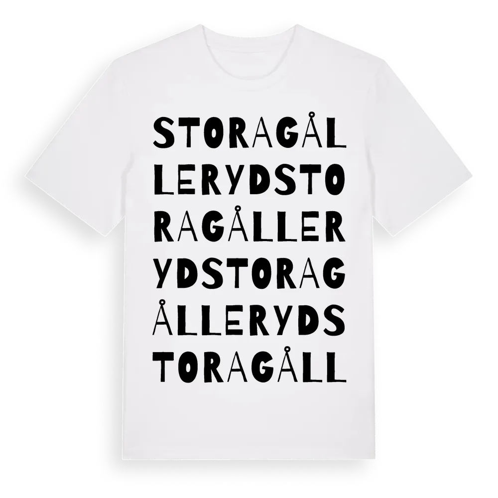 Stora Gålleryd ordlek t-shirt är inspirerad av Stora Gålleryd i Jönköpings län, Sverige. Tröjan är designad för dig som har en speciell koppling till platsen – oavsett om du bor här, har rötterna här eller bara älskar Stora Gålleryd.