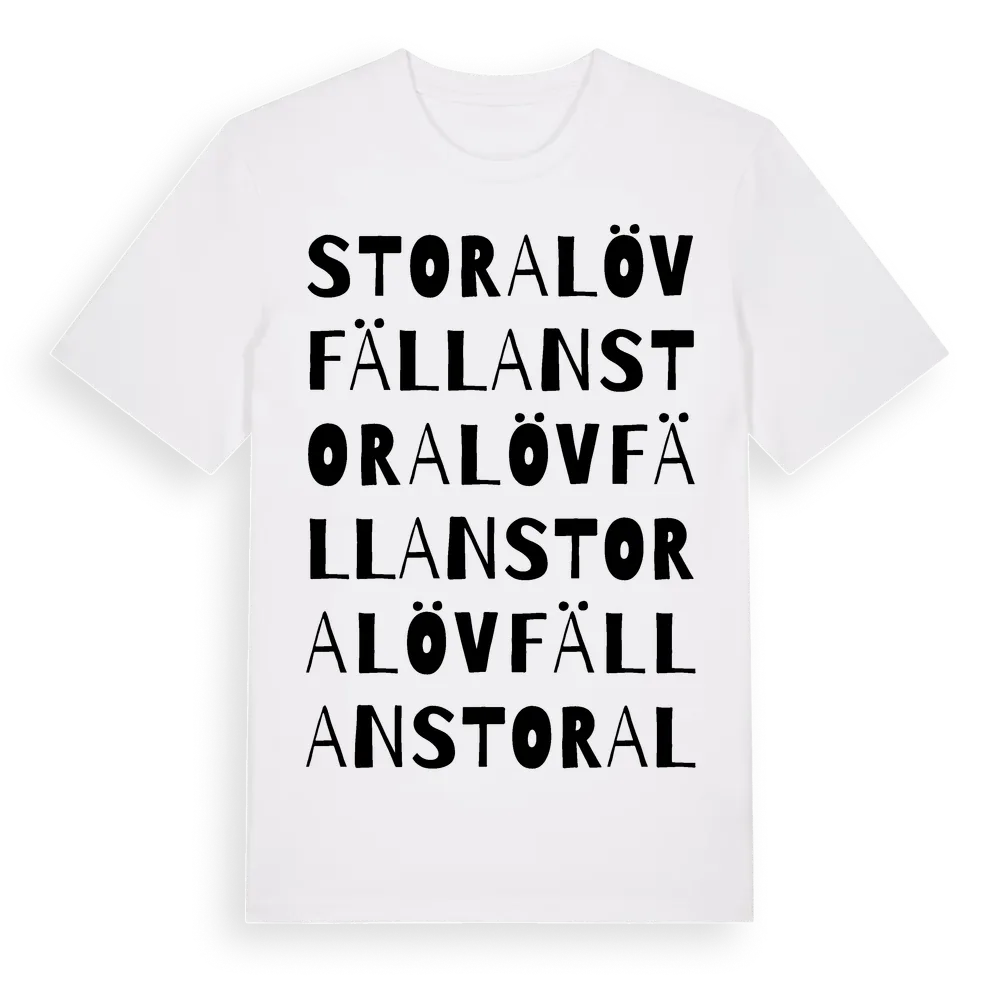 Stora Lövfällan ordlek t-shirt är inspirerad av Stora Lövfällan i Jönköpings län, Sverige. Tröjan är designad för dig som har en speciell koppling till platsen – oavsett om du bor här, har rötterna här eller bara älskar Stora Lövfällan.
