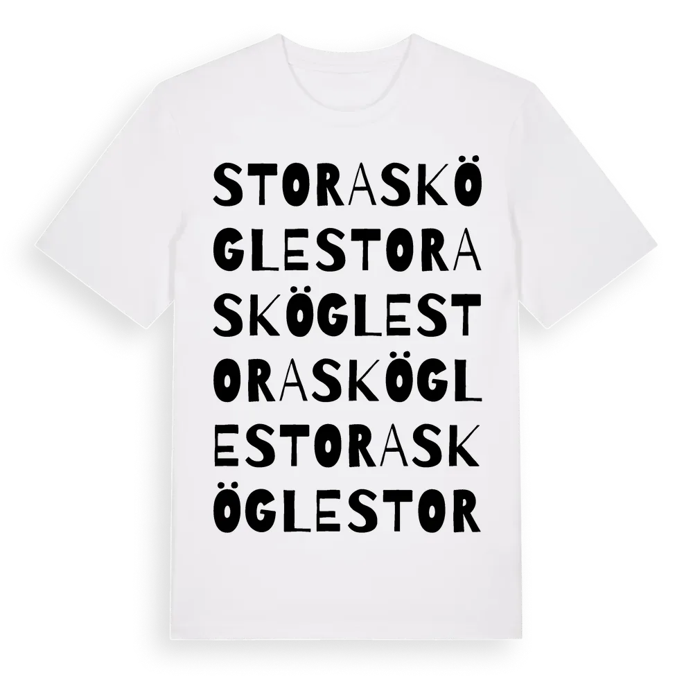 En ordlek byggd på Stora Skögles namn. Subtilt och klurig – ett motiv som bara de som verkligen känner platsen fullt ut förstår. Premium bomull, unisex – från Stora Skögle i Jönköpings län.