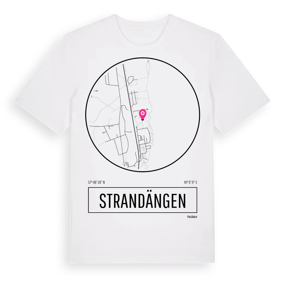 Ett rent, runt tryck med Strandängens namn. Minimalistiskt och stilrent – perfekt för den som känner platsen utan att skrika det. Premium bomull, unisex – från stadsdelen Strandängen i Jönköpings län.