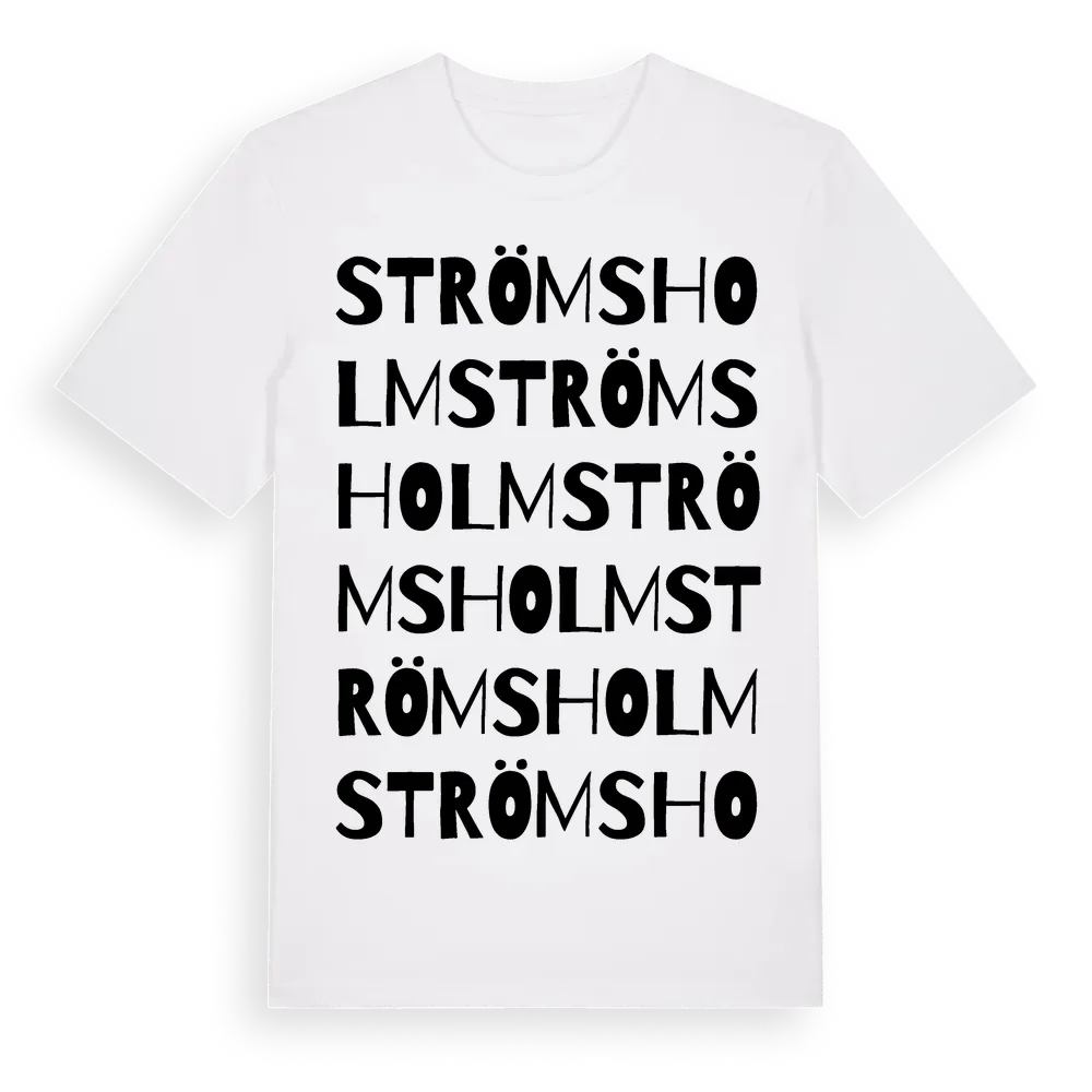 Strömsholm ordlek t-shirt är inspirerad av Strömsholm i Jönköpings län, Sverige. Tröjan är designad för dig som har en speciell koppling till platsen – oavsett om du bor här, har rötterna här eller bara älskar Strömsholm.