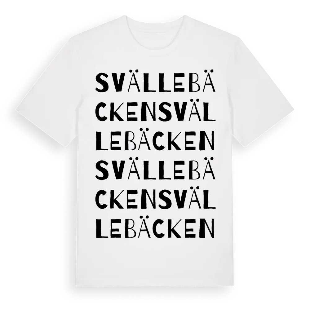 Svällebäcken ordlek t-shirt är inspirerad av Svällebäcken i Jönköpings län, Sverige. Tröjan är designad för dig som har en speciell koppling till platsen – oavsett om du bor här, har rötterna här eller bara älskar Svällebäcken.