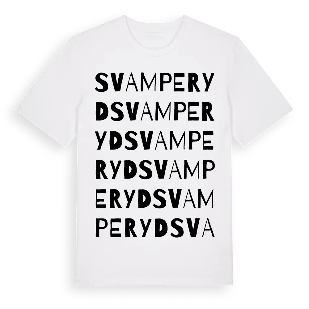 Svamperyd ordlek t-shirt är inspirerad av Svamperyd i Jönköpings län, Sverige. Tröjan är designad för dig som har en speciell koppling till platsen – oavsett om du bor här, har rötterna här eller bara älskar Svamperyd.