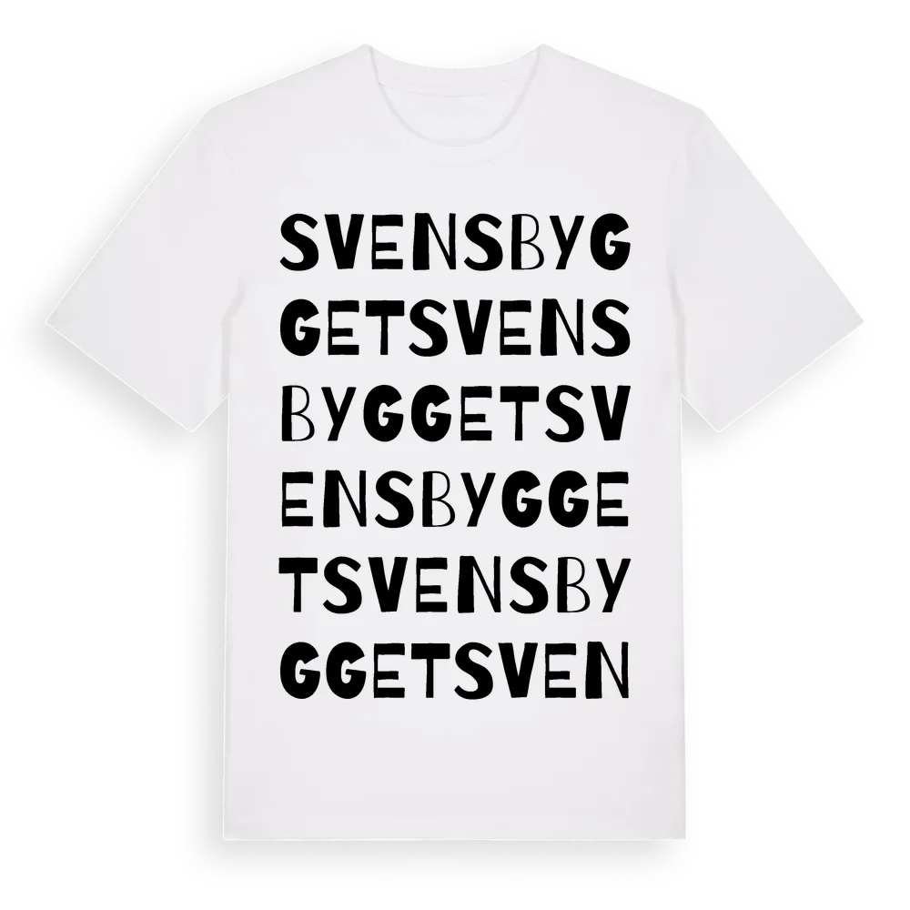 Svensbygget ordlek t-shirt är inspirerad av Svensbygget i Jönköpings län, Sverige. Tröjan är designad för dig som har en speciell koppling till platsen – oavsett om du bor här, har rötterna här eller bara älskar Svensbygget.