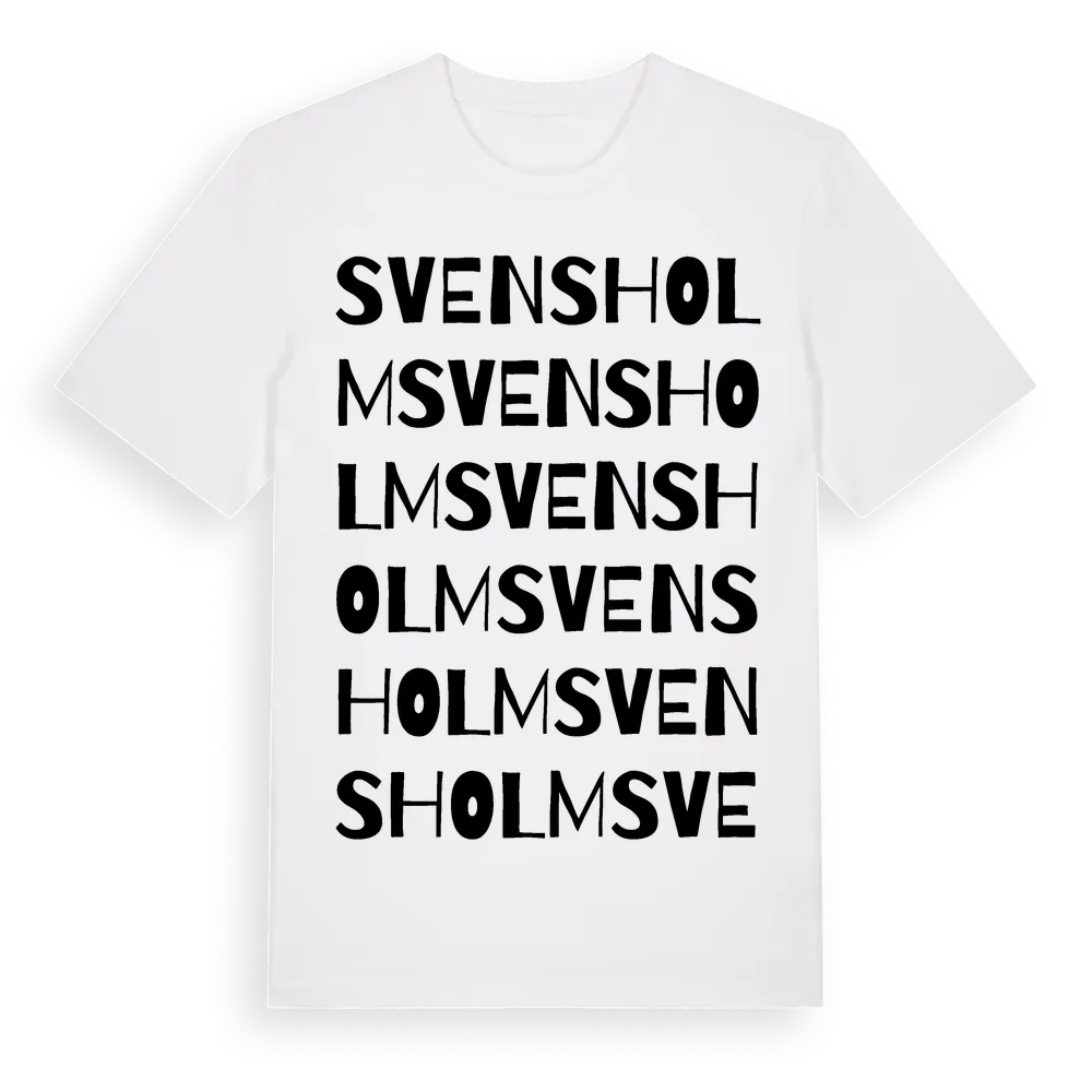 Svensholm ordlek t-shirt är inspirerad av Svensholm i Jönköpings län, Sverige. Tröjan är designad för dig som har en speciell koppling till platsen – oavsett om du bor här, har rötterna här eller bara älskar Svensholm.