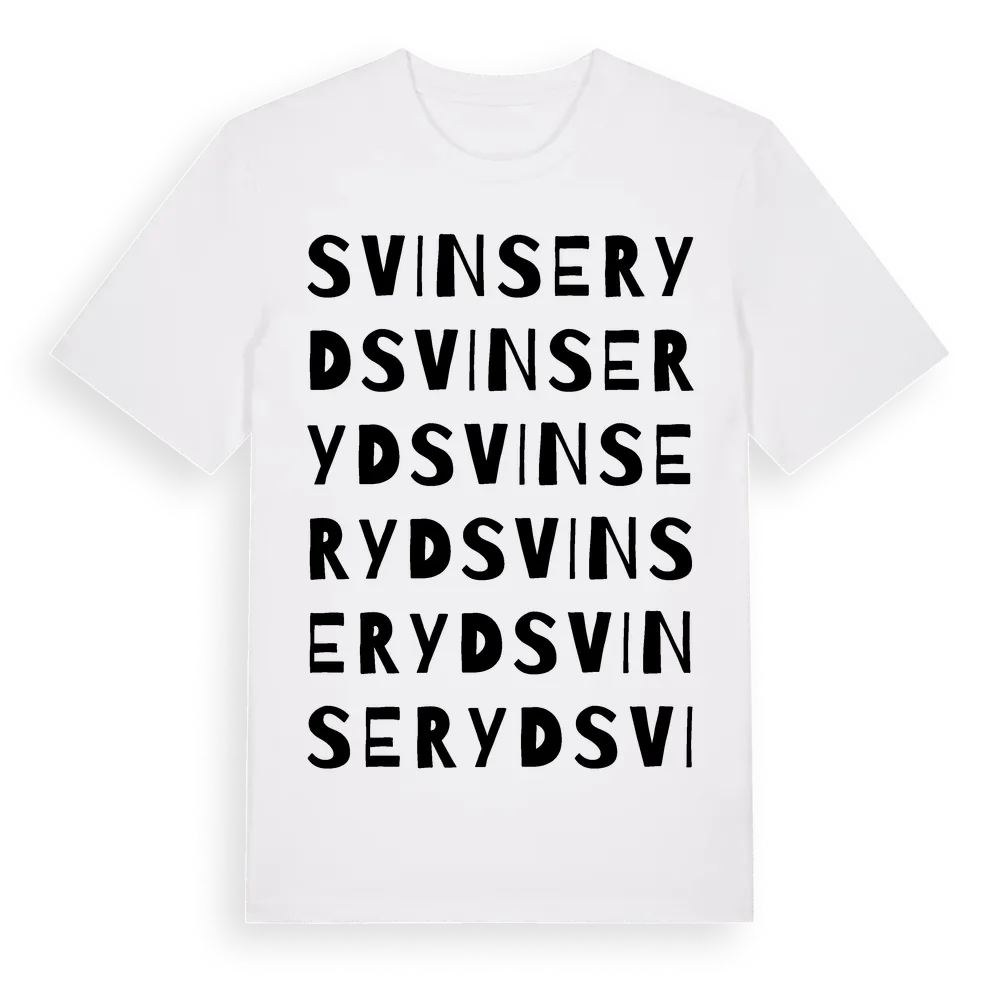Svinseryd ordlek t-shirt är inspirerad av Svinseryd i Jönköpings län, Sverige. Tröjan är designad för dig som har en speciell koppling till platsen – oavsett om du bor här, har rötterna här eller bara älskar Svinseryd.