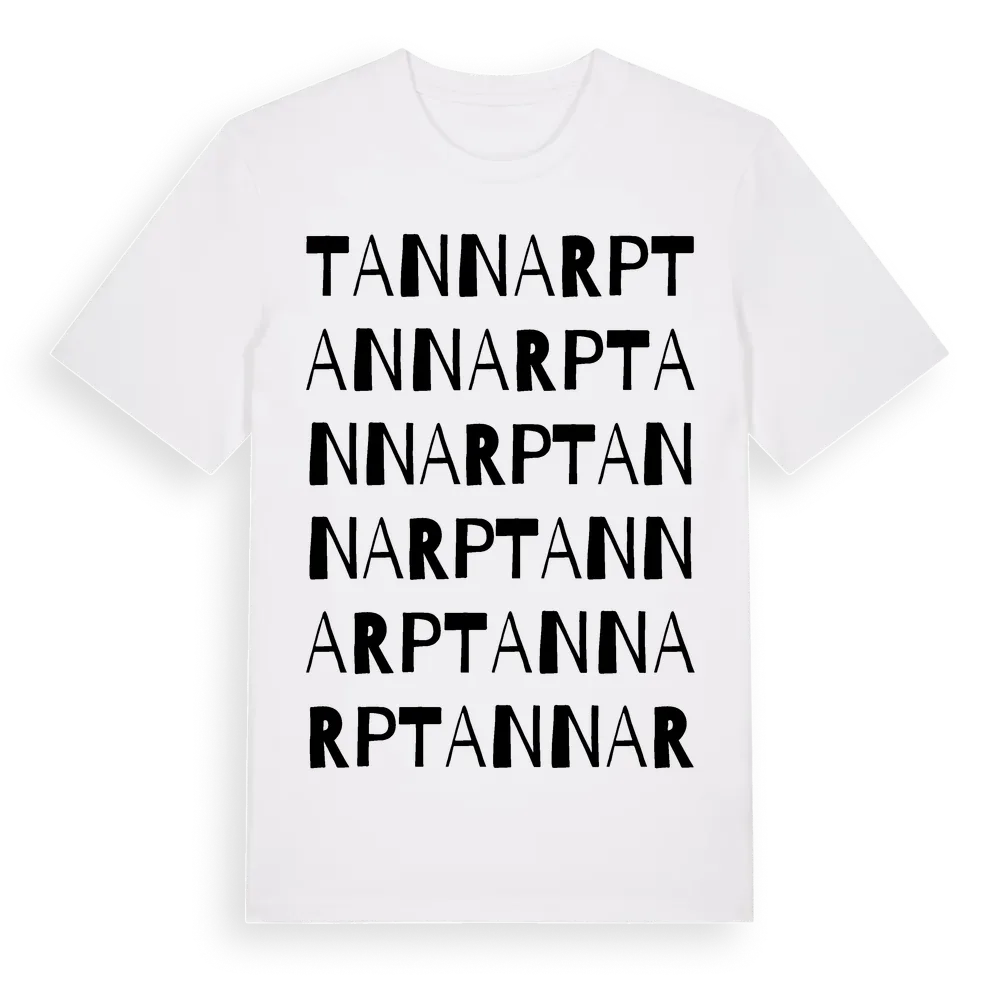 Tannarp ordlek t-shirt är inspirerad av byn Tannarp i Jönköpings län, Sverige. Tröjan är designad för dig som har en speciell koppling till platsen – oavsett om du bor här, har rötterna här eller bara älskar Tannarp.