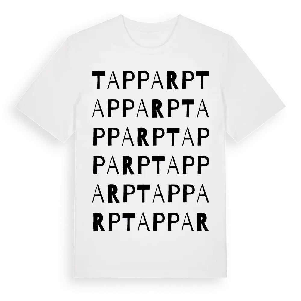 Tapparp ordlek t-shirt är inspirerad av byn Tapparp i Jönköpings län, Sverige. Tröjan är designad för dig som har en speciell koppling till platsen – oavsett om du bor här, har rötterna här eller bara älskar Tapparp.