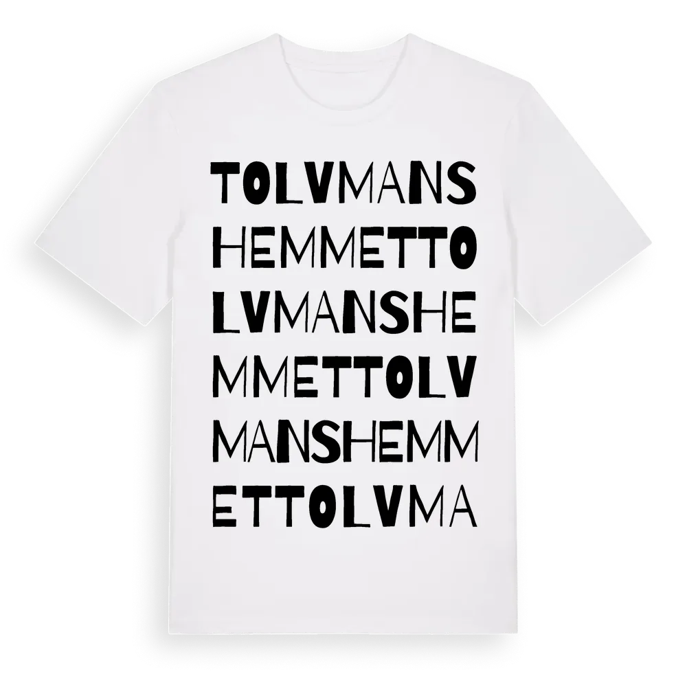 Tolvmanshemmet ordlek t-shirt är inspirerad av Tolvmanshemmet i Jönköpings län, Sverige. Tröjan är designad för dig som har en speciell koppling till platsen – oavsett om du bor här, har rötterna här eller bara älskar Tolvmanshemmet.