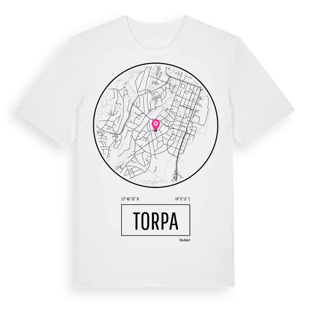 Ett rent, runt tryck med Torpas namn. Minimalistiskt och stilrent – perfekt för den som känner platsen utan att skrika det. Premium bomull, unisex – från stadsdelen Torpa i Jönköpings län.