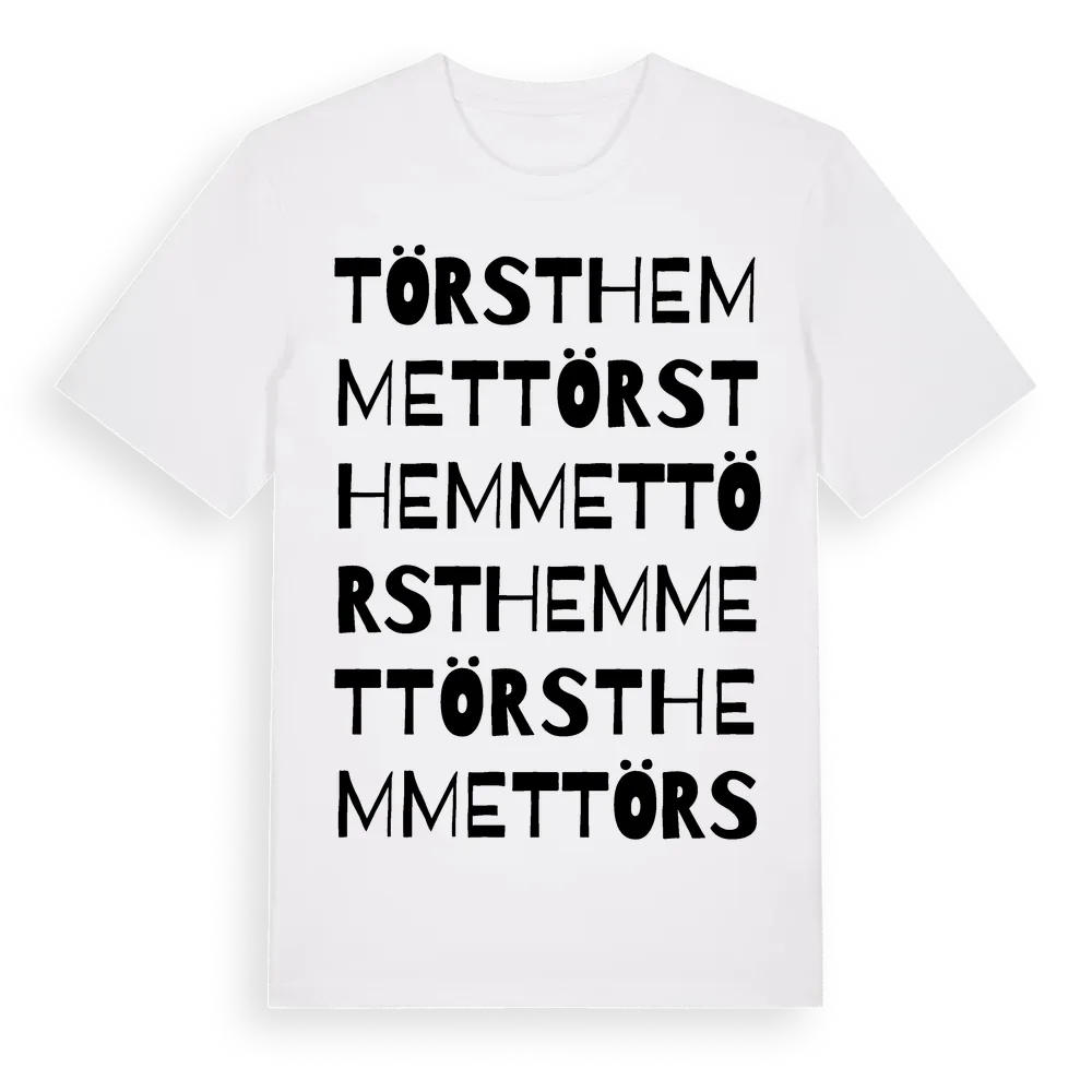Törsthemmet ordlek t-shirt är inspirerad av Törsthemmet i Jönköpings län, Sverige. Tröjan är designad för dig som har en speciell koppling till platsen – oavsett om du bor här, har rötterna här eller bara älskar Törsthemmet.