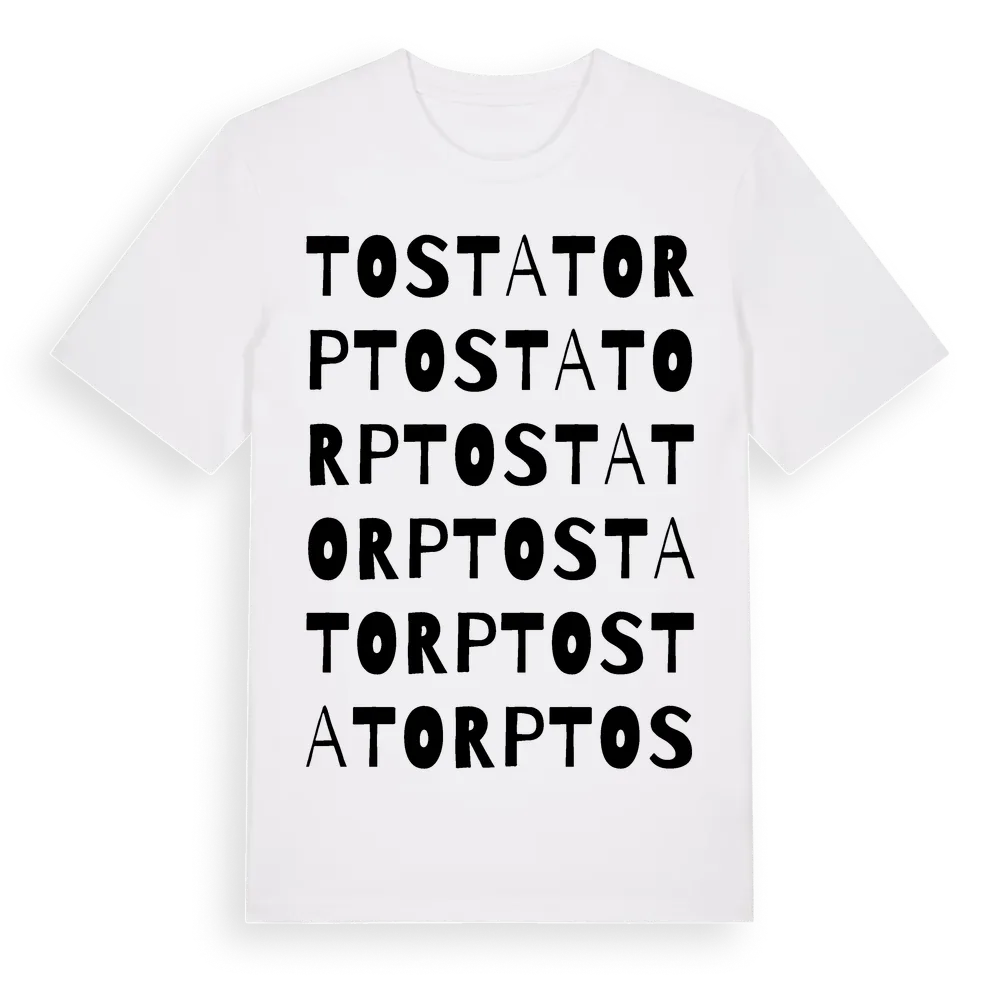 Tostatorp ordlek t-shirt är inspirerad av byn Tostatorp i Jönköpings län, Sverige. Tröjan är designad för dig som har en speciell koppling till platsen – oavsett om du bor här, har rötterna här eller bara älskar Tostatorp.