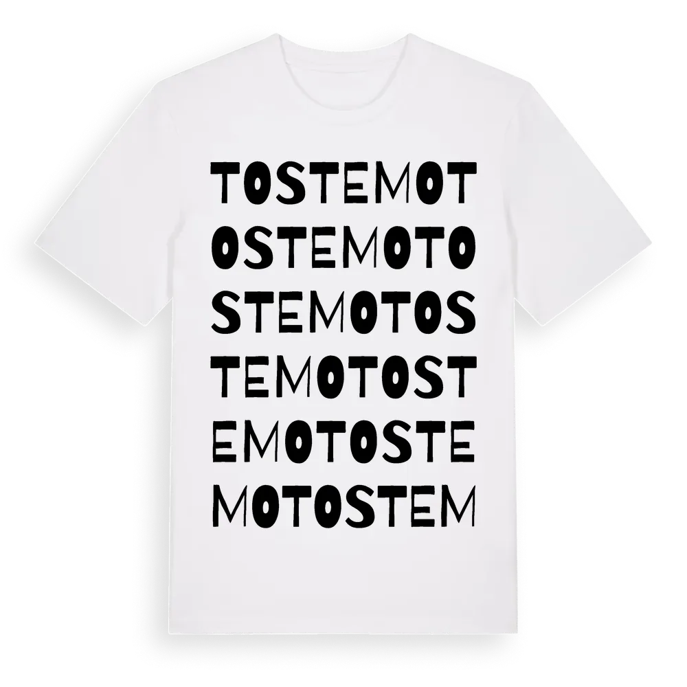 En ordlek byggd på Tostemos namn. Subtilt och klurig – ett motiv som bara de som verkligen känner platsen fullt ut förstår. Premium bomull, unisex – från Tostemo i Jönköpings län.