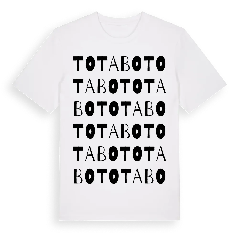 Totabo ordlek t-shirt är inspirerad av Totabo i Jönköpings län, Sverige. Tröjan är designad för dig som har en speciell koppling till platsen – oavsett om du bor här, har rötterna här eller bara älskar Totabo.
