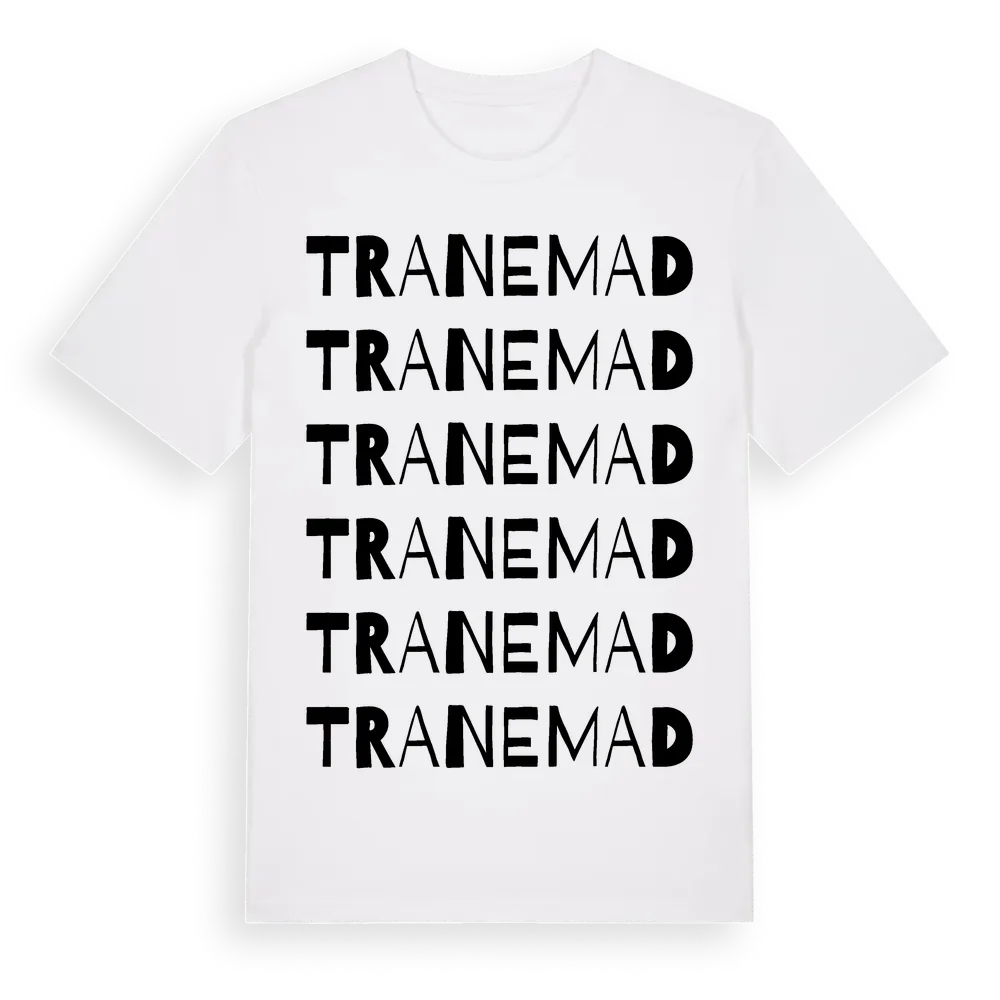 En ordlek byggd på Tranemads namn. Subtilt och klurig – ett motiv som bara de som verkligen känner platsen fullt ut förstår. Premium bomull, unisex – från Tranemad i Jönköpings län.