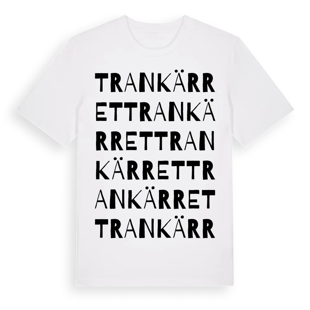 En ordlek byggd på Trankärrets namn. Subtilt och klurig – ett motiv som bara de som verkligen känner platsen fullt ut förstår. Premium bomull, unisex – från Trankärret i Jönköpings län.