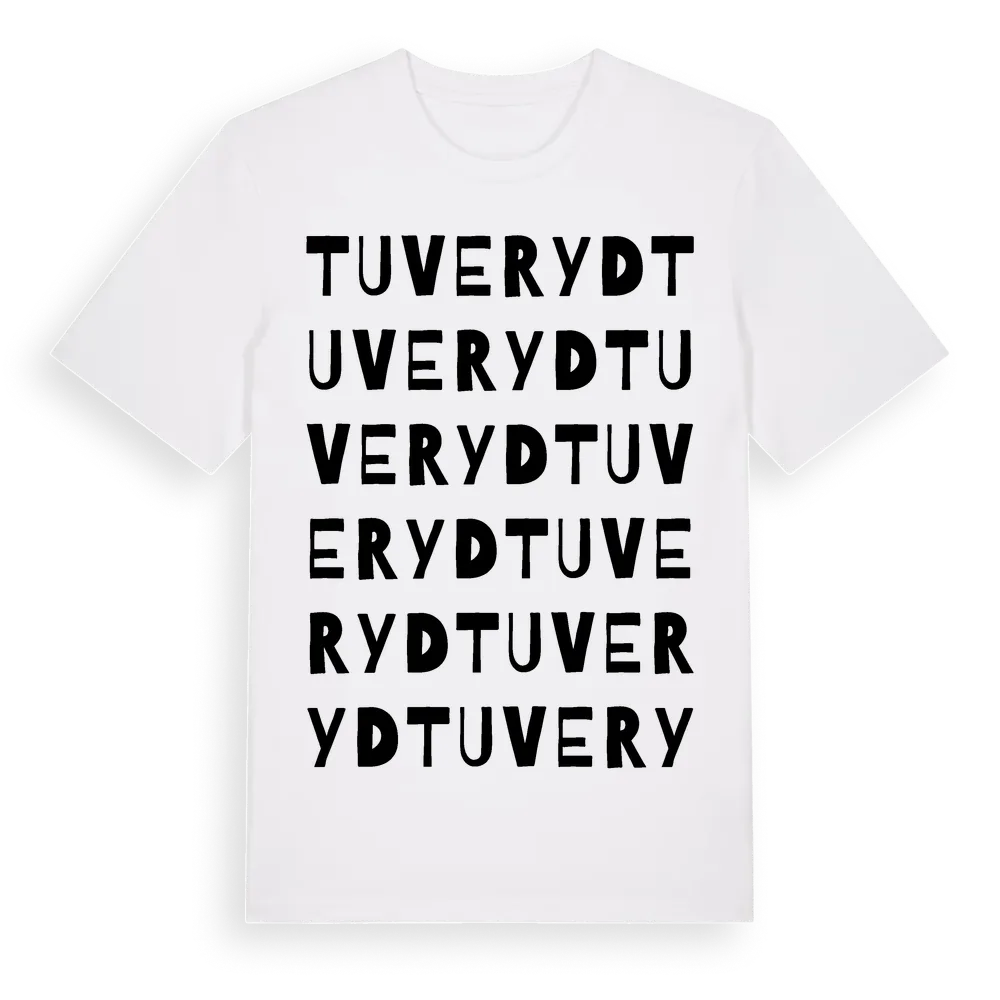 Tuveryd ordlek t-shirt är inspirerad av Tuveryd i Jönköpings län, Sverige. Tröjan är designad för dig som har en speciell koppling till platsen – oavsett om du bor här, har rötterna här eller bara älskar Tuveryd.