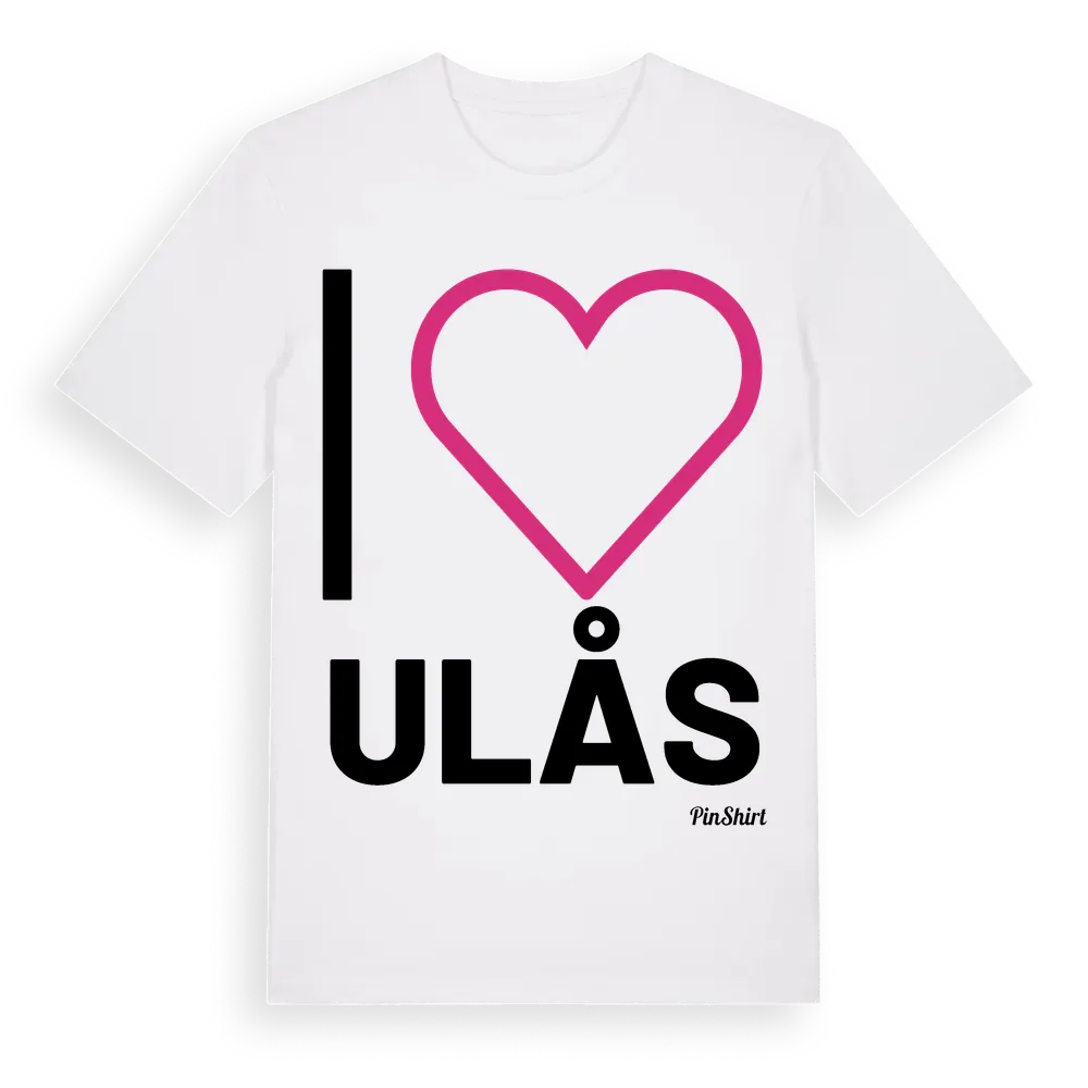 Det klassiska "I ❤ Ulås"-motivet i stort format som täcker hela bröstet. För dig som vill visa kärleken till Ulås på riktigt. Premium bomull, unisex – från Ulås i Jönköpings län.