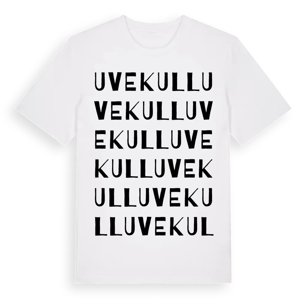 Uvekull ordlek t-shirt är inspirerad av byn Uvekull i Jönköpings län, Sverige. Tröjan är designad för dig som har en speciell koppling till platsen – oavsett om du bor här, har rötterna här eller bara älskar Uvekull.