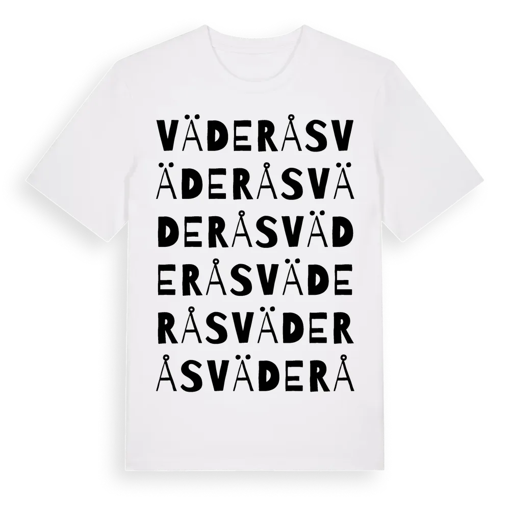 Väderås ordlek t-shirt är inspirerad av byn Väderås i Jönköpings län, Sverige. Tröjan är designad för dig som har en speciell koppling till platsen – oavsett om du bor här, har rötterna här eller bara älskar Väderås.