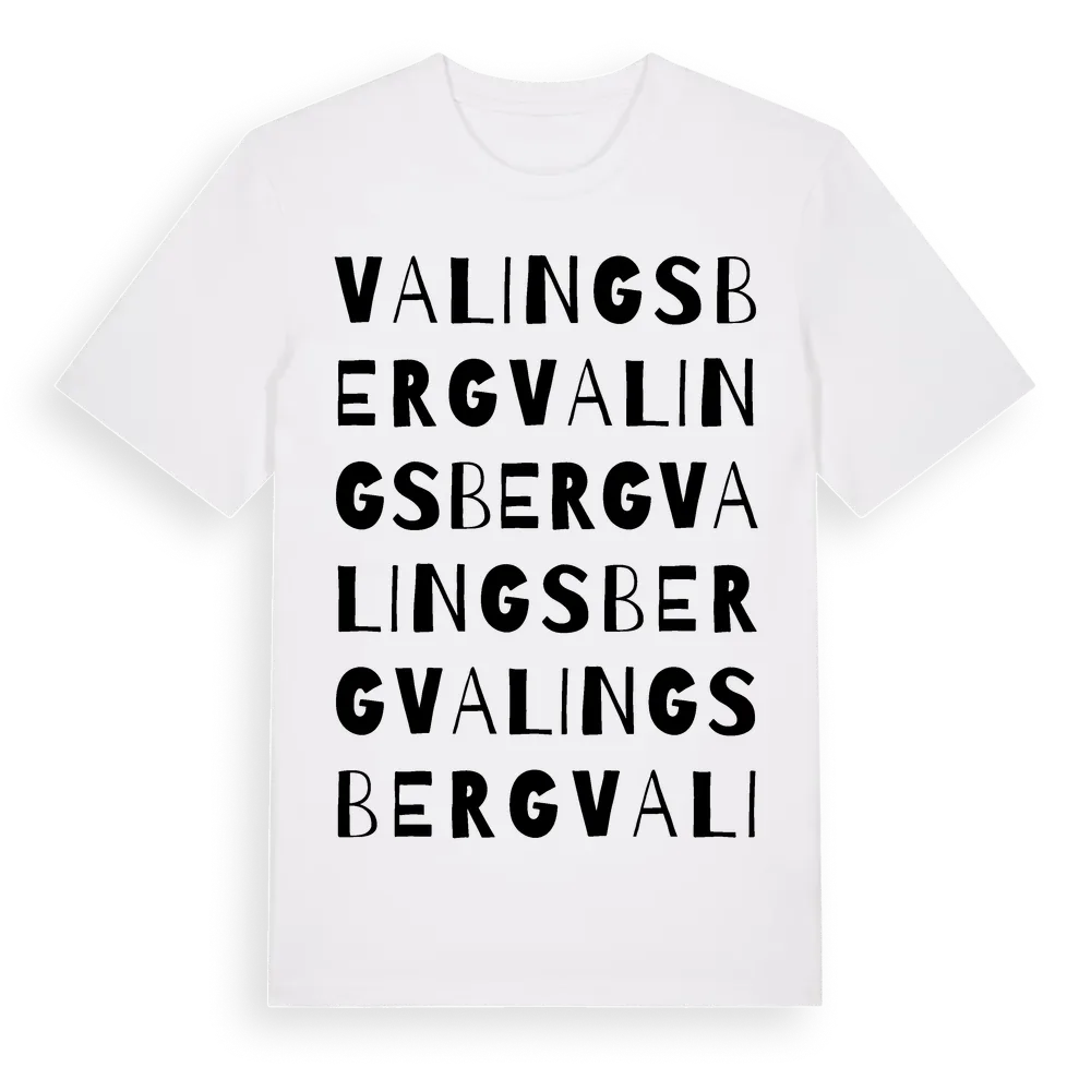 Valingsberg ordlek t-shirt är inspirerad av Valingsberg i Jönköpings län, Sverige. Tröjan är designad för dig som har en speciell koppling till platsen – oavsett om du bor här, har rötterna här eller bara älskar Valingsberg.