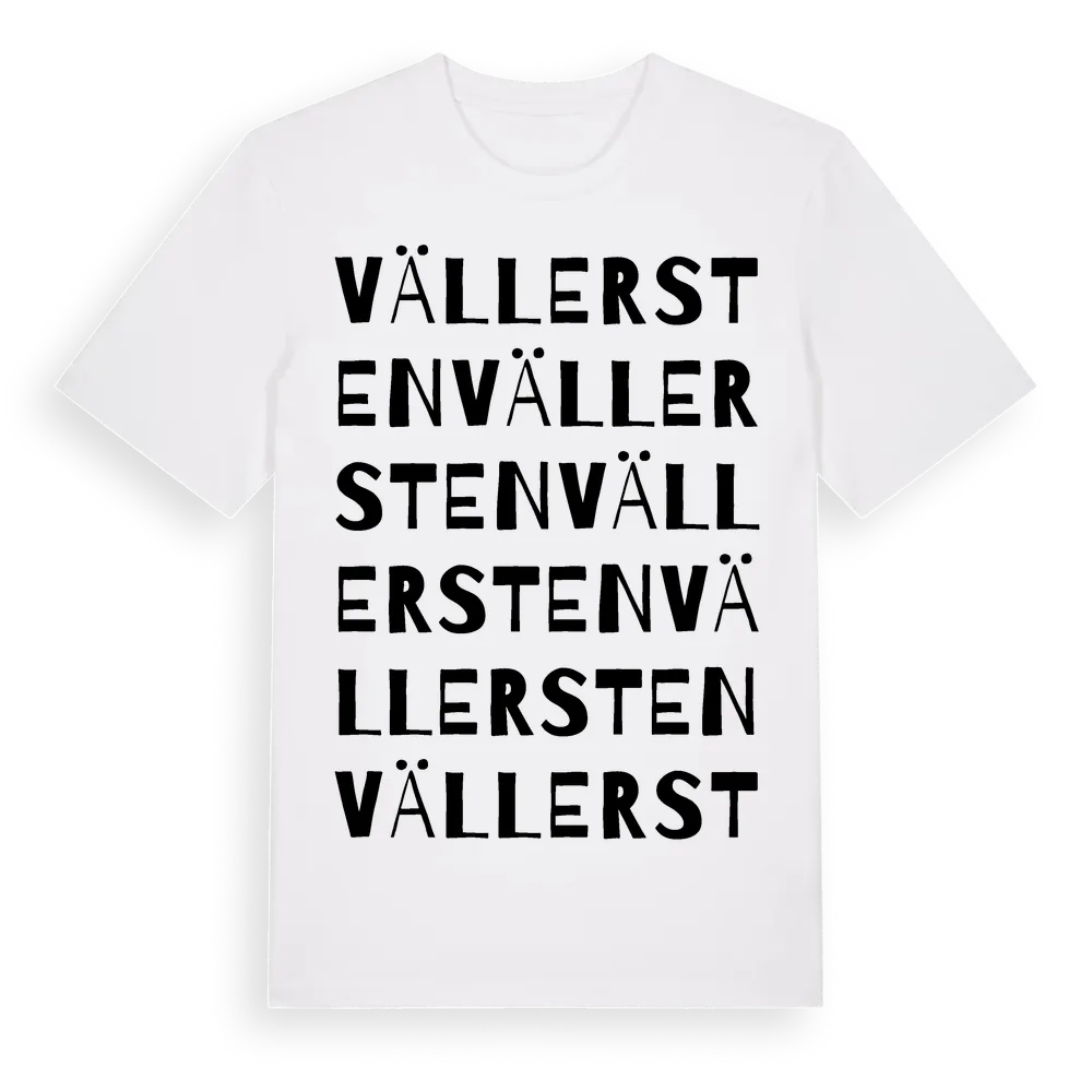 Vällersten ordlek t-shirt är inspirerad av byn Vällersten i Jönköpings län, Sverige. Tröjan är designad för dig som har en speciell koppling till platsen – oavsett om du bor här, har rötterna här eller bara älskar Vällersten.