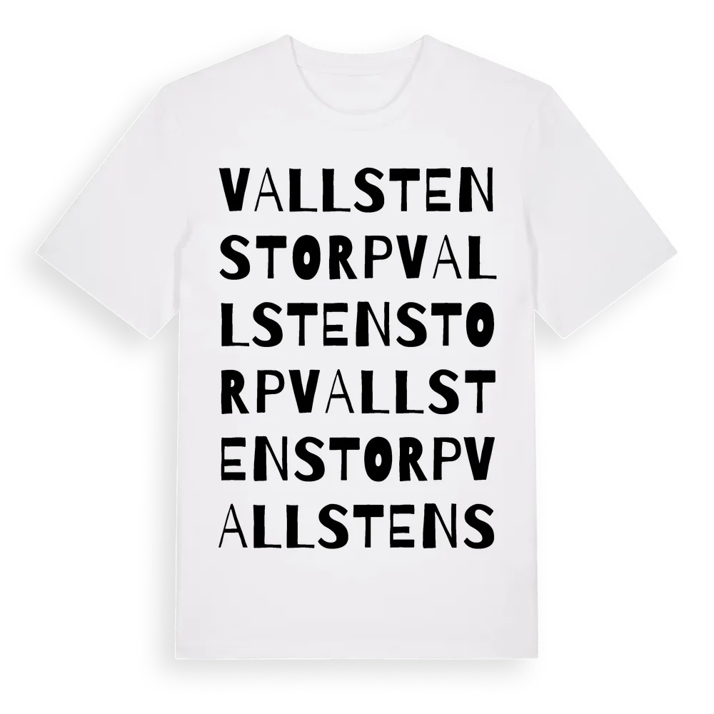 Vallstenstorp ordlek t-shirt är inspirerad av Vallstenstorp i Jönköpings län, Sverige. Tröjan är designad för dig som har en speciell koppling till platsen – oavsett om du bor här, har rötterna här eller bara älskar Vallstenstorp.
