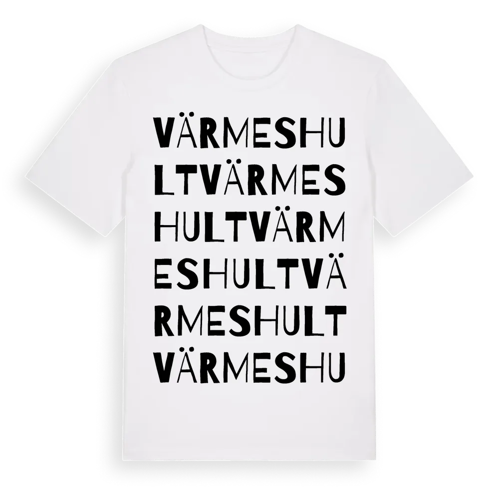 Värmeshult ordlek t-shirt är inspirerad av byn Värmeshult i Jönköpings län, Sverige. Tröjan är designad för dig som har en speciell koppling till platsen – oavsett om du bor här, har rötterna här eller bara älskar Värmeshult.