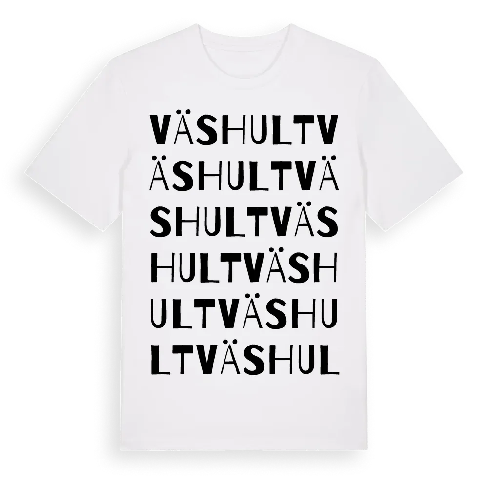 Väshult ordlek t-shirt är inspirerad av byn Väshult i Jönköpings län, Sverige. Tröjan är designad för dig som har en speciell koppling till platsen – oavsett om du bor här, har rötterna här eller bara älskar Väshult.