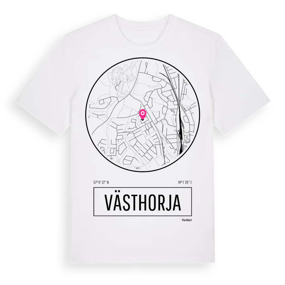 Västhorja t-shirt är inspirerad av stadsdelen Västhorja i Jönköpings län, Sverige. Tröjan är designad för dig som har en speciell koppling till platsen – oavsett om du bor här, har rötterna här eller bara älskar Västhorja.