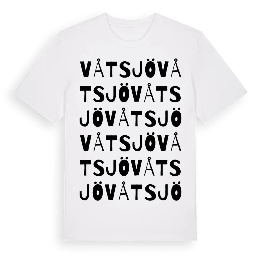 Våtsjö ordlek t-shirt är inspirerad av byn Våtsjö i Jönköpings län, Sverige. Tröjan är designad för dig som har en speciell koppling till platsen – oavsett om du bor här, har rötterna här eller bara älskar Våtsjö.