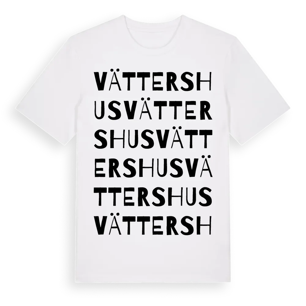 Vättershus ordlek t-shirt är inspirerad av byn Vättershus i Jönköpings län, Sverige. Tröjan är designad för dig som har en speciell koppling till platsen – oavsett om du bor här, har rötterna här eller bara älskar Vättershus.