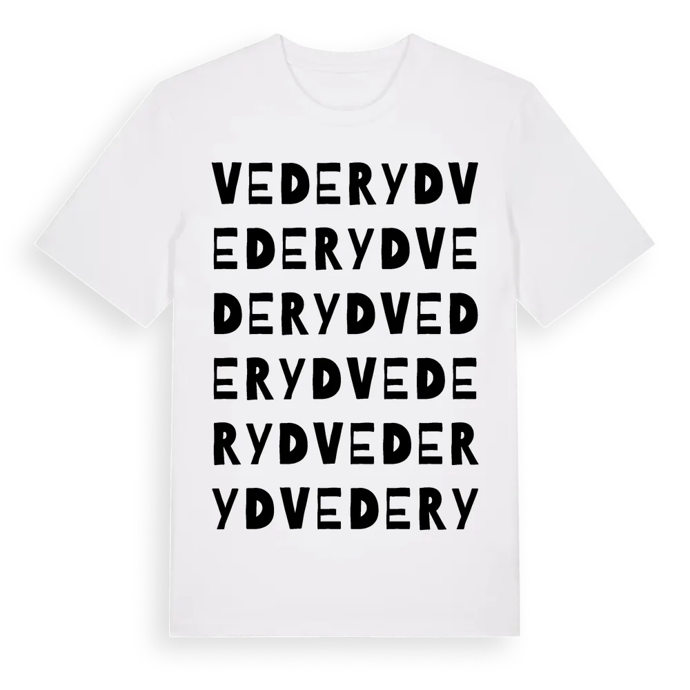 Vederyd ordlek t-shirt är inspirerad av Vederyd i Jönköpings län, Sverige. Tröjan är designad för dig som har en speciell koppling till platsen – oavsett om du bor här, har rötterna här eller bara älskar Vederyd.