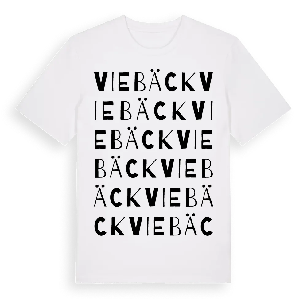 Viebäck ordlek t-shirt är inspirerad av byn Viebäck i Jönköpings län, Sverige. Tröjan är designad för dig som har en speciell koppling till platsen – oavsett om du bor här, har rötterna här eller bara älskar Viebäck.