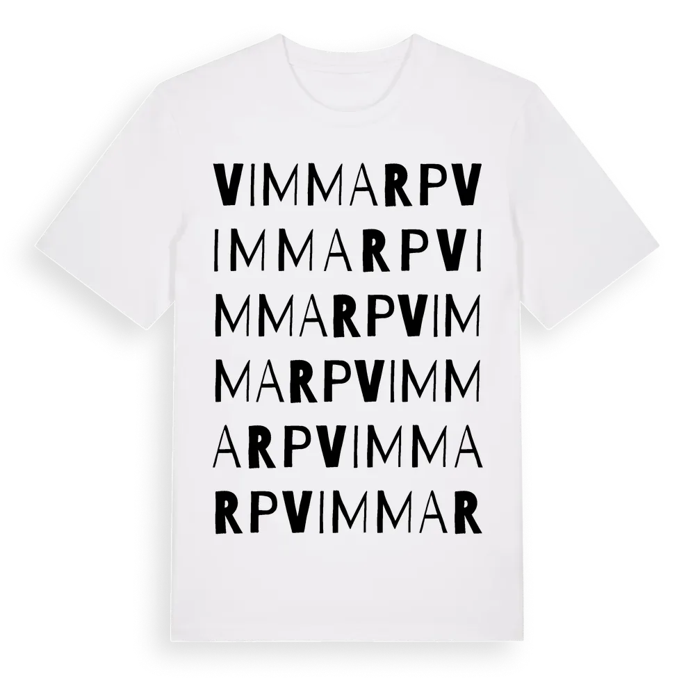 Vimmarp ordlek t-shirt är inspirerad av byn Vimmarp i Jönköpings län, Sverige. Tröjan är designad för dig som har en speciell koppling till platsen – oavsett om du bor här, har rötterna här eller bara älskar Vimmarp.