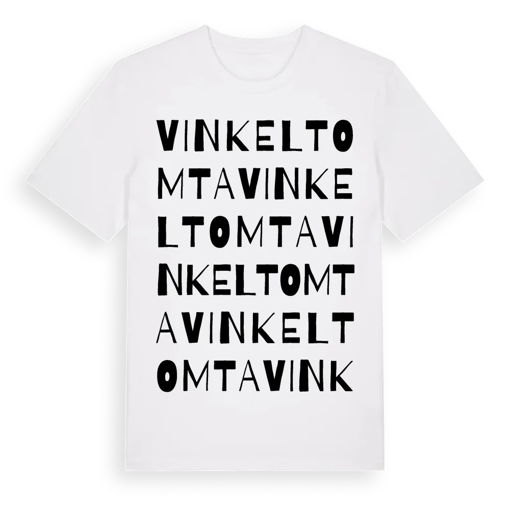 Vinkeltomta ordlek t-shirt är inspirerad av Vinkeltomta i Jönköpings län, Sverige. Tröjan är designad för dig som har en speciell koppling till platsen – oavsett om du bor här, har rötterna här eller bara älskar Vinkeltomta.