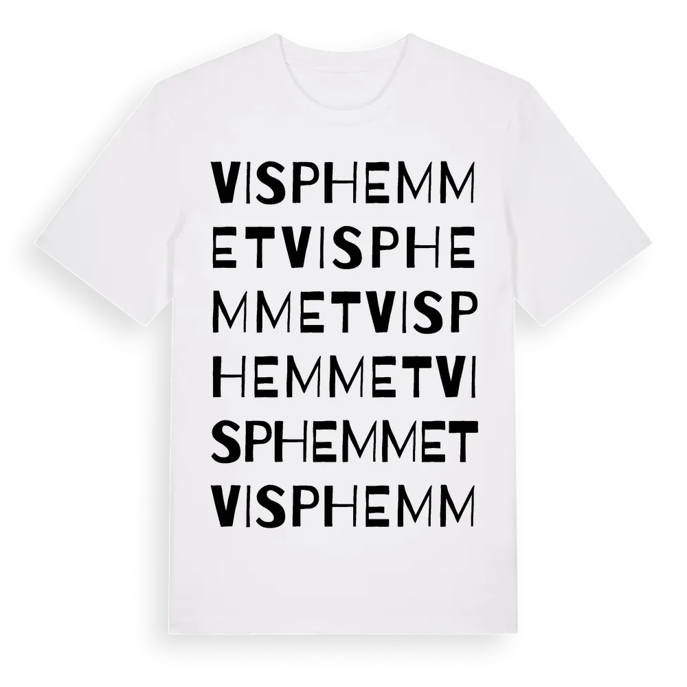 Visphemmet ordlek t-shirt är inspirerad av Visphemmet i Jönköpings län, Sverige. Tröjan är designad för dig som har en speciell koppling till platsen – oavsett om du bor här, har rötterna här eller bara älskar Visphemmet.