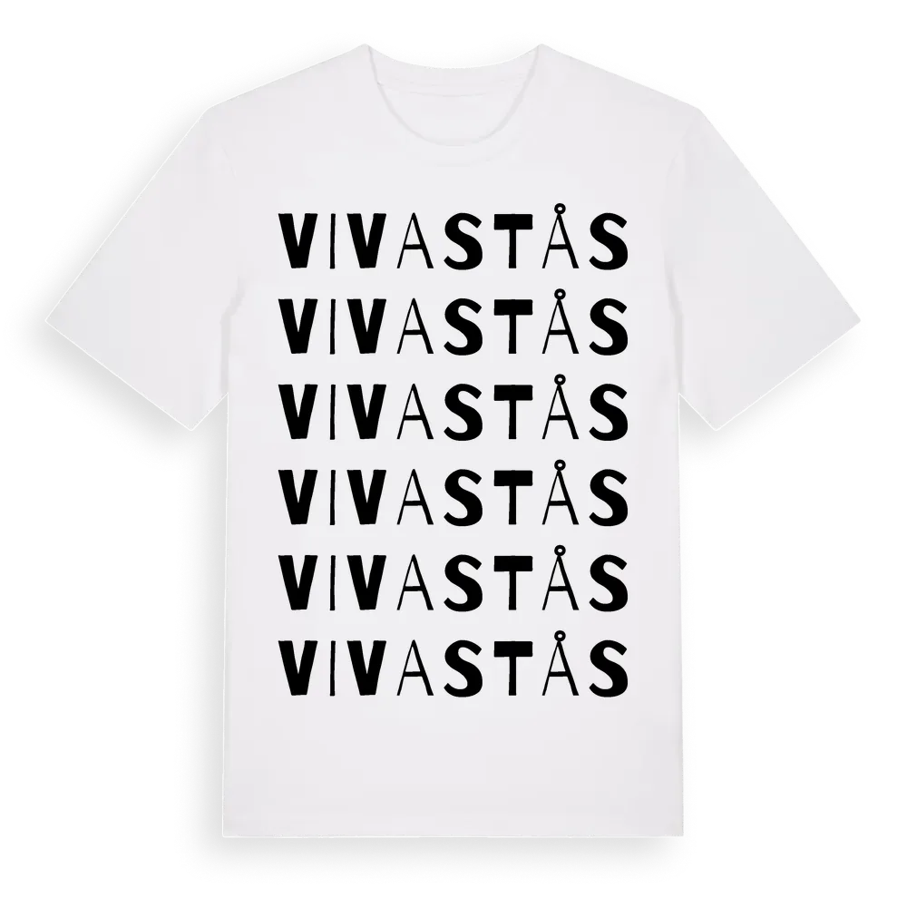 Vivastås ordlek t-shirt är inspirerad av byn Vivastås i Jönköpings län, Sverige. Tröjan är designad för dig som har en speciell koppling till platsen – oavsett om du bor här, har rötterna här eller bara älskar Vivastås.
