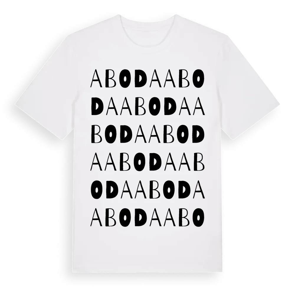 Aboda ordlek t-shirt är inspirerad av byn Aboda i Kalmar län, Sverige. Tröjan är designad för dig som har en speciell koppling till platsen – oavsett om du bor här, har rötterna här eller bara älskar Aboda.