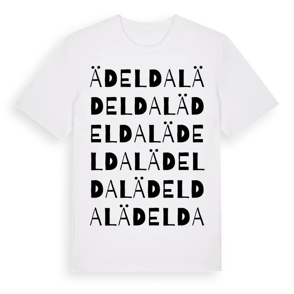 Ädeldal ordlek t-shirt är inspirerad av Ädeldal i Kalmar län, Sverige. Tröjan är designad för dig som har en speciell koppling till platsen – oavsett om du bor här, har rötterna här eller bara älskar Ädeldal.
