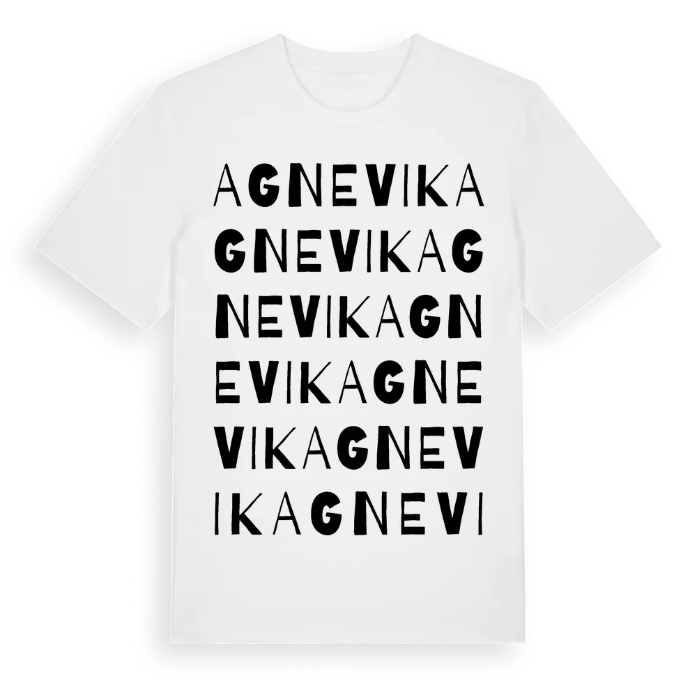 Agnevik ordlek t-shirt är inspirerad av Agnevik i Kalmar län, Sverige. Tröjan är designad för dig som har en speciell koppling till platsen – oavsett om du bor här, har rötterna här eller bara älskar Agnevik.