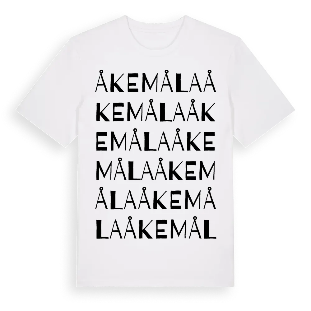 Åkemåla ordlek t-shirt är inspirerad av byn Åkemåla i Kalmar län, Sverige. Tröjan är designad för dig som har en speciell koppling till platsen – oavsett om du bor här, har rötterna här eller bara älskar Åkemåla.