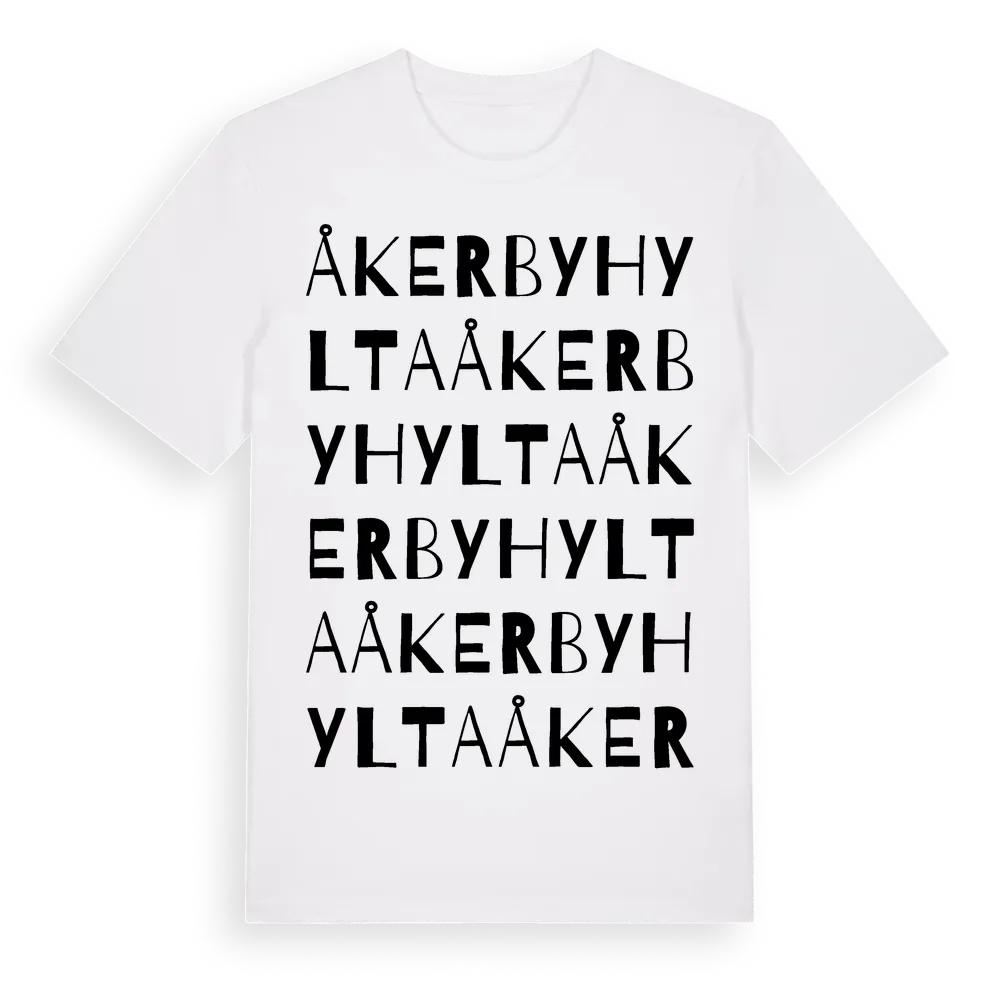 Åkerby Hylta ordlek t-shirt är inspirerad av byn Åkerby Hylta i Kalmar län, Sverige. Tröjan är designad för dig som har en speciell koppling till platsen – oavsett om du bor här, har rötterna här eller bara älskar Åkerby Hylta.