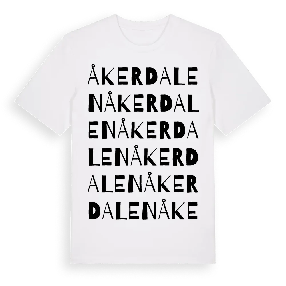 Åkerdalen ordlek t-shirt är inspirerad av Åkerdalen i Kalmar län, Sverige. Tröjan är designad för dig som har en speciell koppling till platsen – oavsett om du bor här, har rötterna här eller bara älskar Åkerdalen.