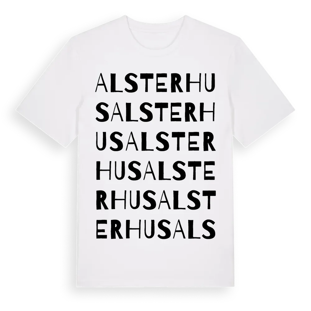 Alsterhus ordlek t-shirt är inspirerad av Alsterhus i Kalmar län, Sverige. Tröjan är designad för dig som har en speciell koppling till platsen – oavsett om du bor här, har rötterna här eller bara älskar Alsterhus.