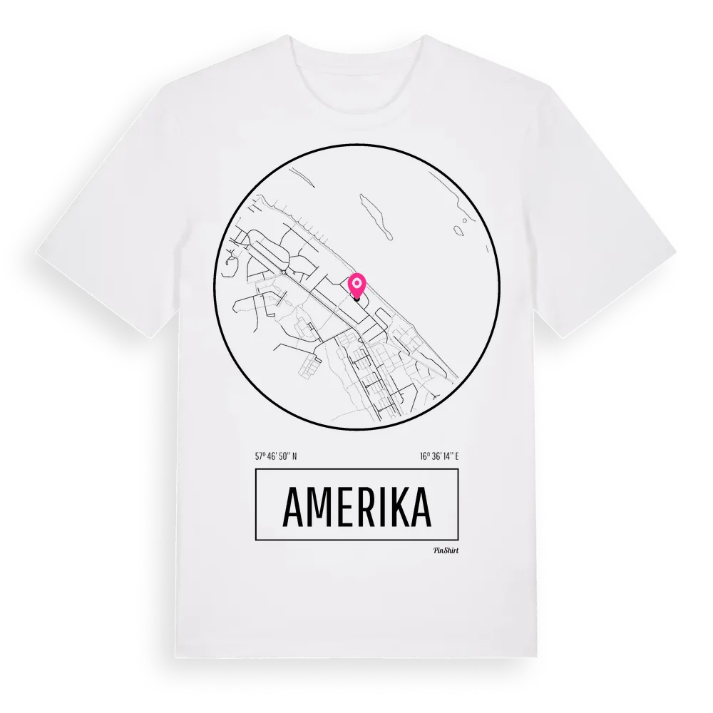 Amerika t-shirt är inspirerad av stadsdelen Amerika i Kalmar län, Sverige. Tröjan är designad för dig som har en speciell koppling till platsen – oavsett om du bor här, har rötterna här eller bara älskar Amerika.