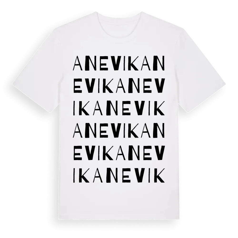 Anevik ordlek t-shirt är inspirerad av Anevik i Kalmar län, Sverige. Tröjan är designad för dig som har en speciell koppling till platsen – oavsett om du bor här, har rötterna här eller bara älskar Anevik.